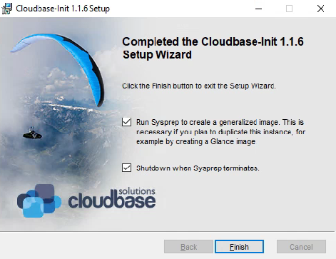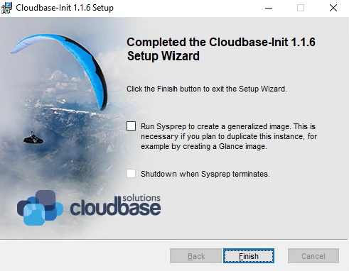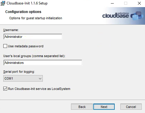 • เลือก “Run Cloudbase-Init service as LocalSystem”
