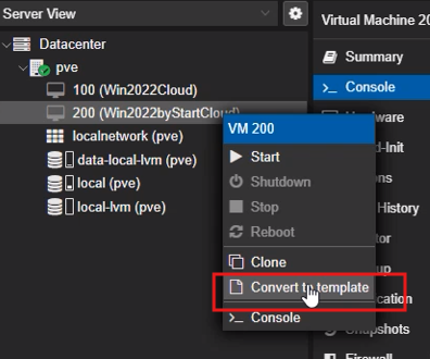 •  เลือก VM Windows cloud-init แล้วเลือก Convert to template