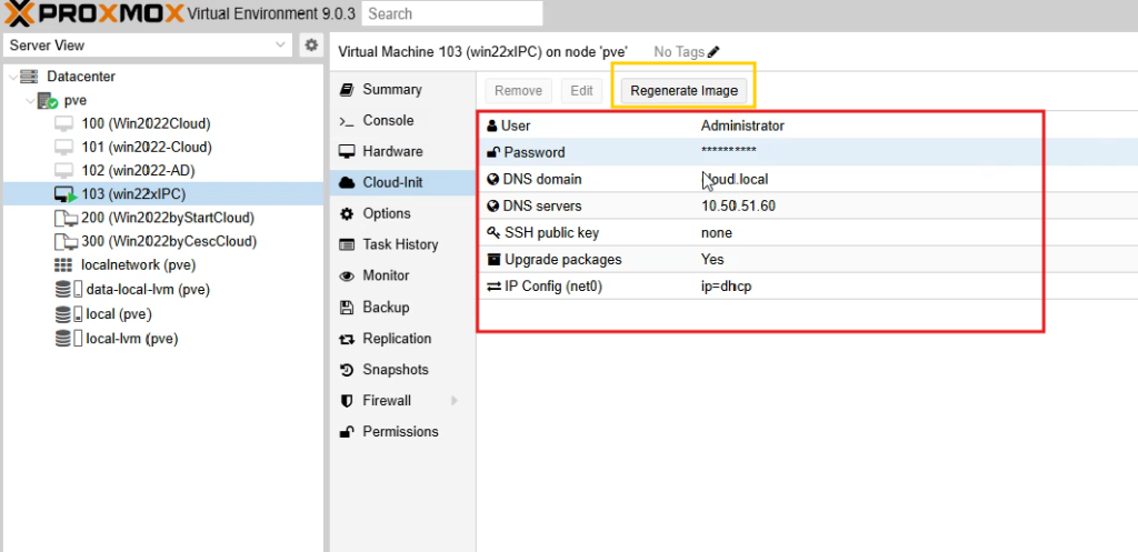 • ถ้าต้องการเปลี่ยนค่าอะไรใน  Cloud-Init  สามารรถทำได้เลย  อย่าลืมคลิกปุ่ม Regenerate Image (ทุกครั้งที่มีการเปลี่ยนค่า) แล้วทำการ Restart VM จากนั้น Windows จะรับค่าใหม่จาก  Cloud-Init ทันที