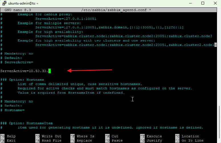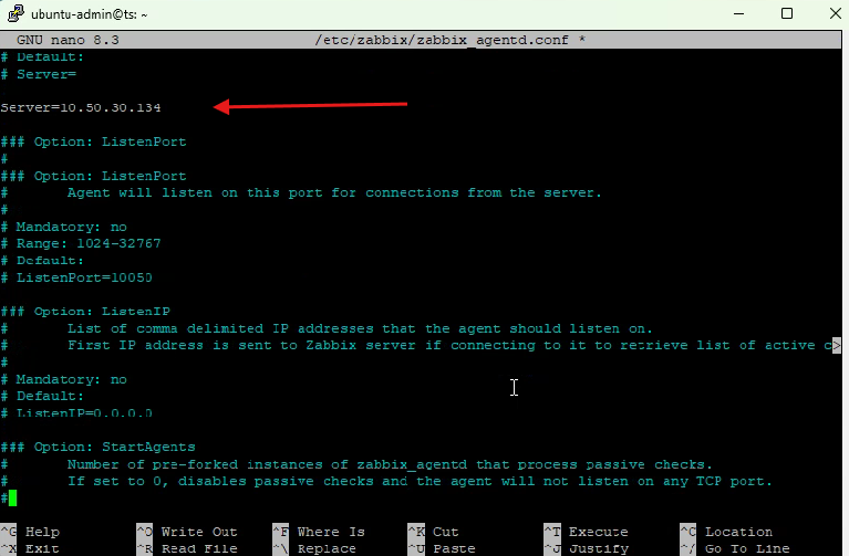sudo nano /etc/zabbix/zabbix_agentd.conft
