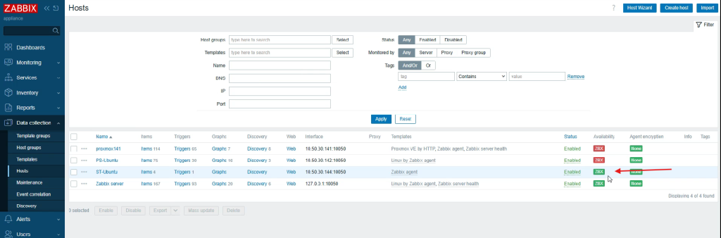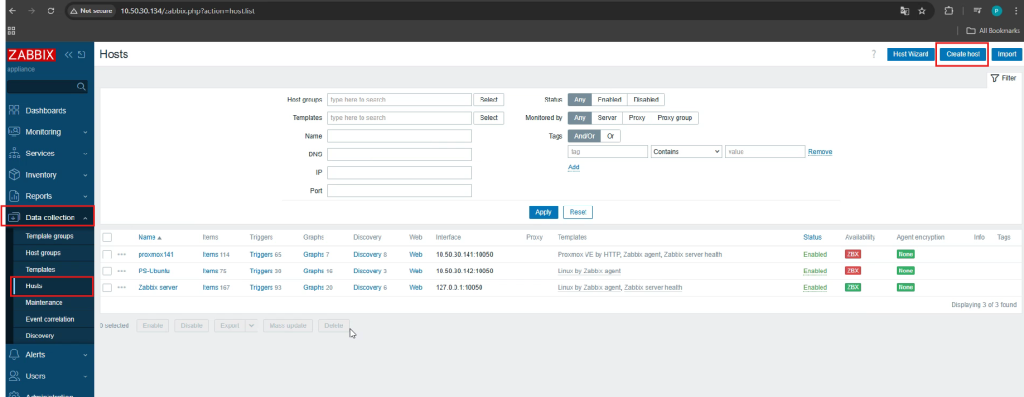 2. ไปที่เมนู Data collection → Hosts → Create host