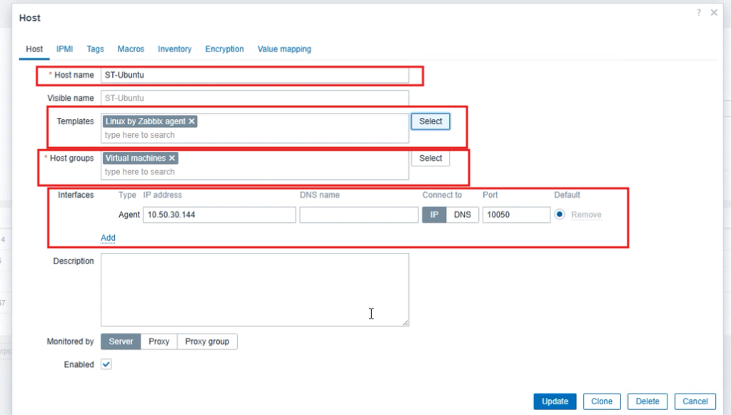 Agent interface: ใส่ IP Address ของเครื่อง Ubuntu server ของเรา