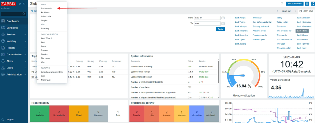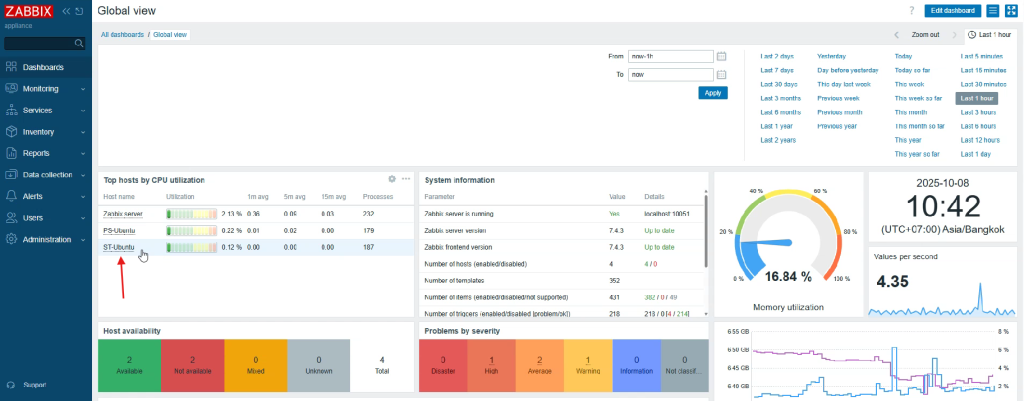 5. ต้องการดูข้อมูลล่าสุดที่ Ubuntu Server ใช้งาน จะนำเข้าสู่ Zabbix นั่นเอง
