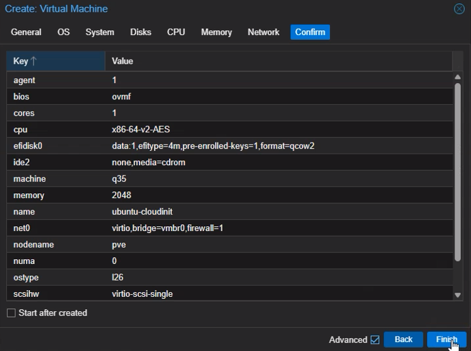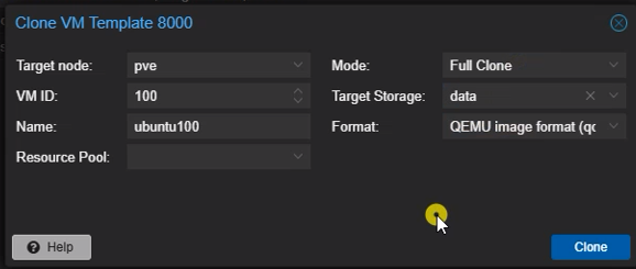 9. ตอนนี้คุณมีเทมเพลต Proxmox cloud-init ที่สามารถโคลนสำหรับ VM ใหม่ได้