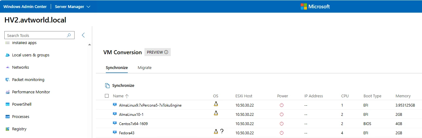 Migrate VMware virtual machines to Hyper-V in WAC