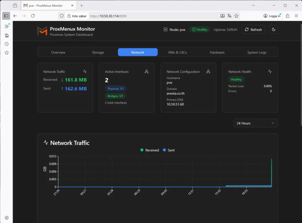 ต่อมาจะเป็น Network ก็จะเห็น interface สถานนะกราฟ และ รายละเอียดต่างๆ
