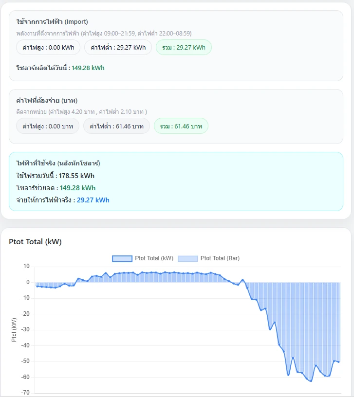 1. มอนิเตอร์ไฟฟ้าแบบ Real-time เช่นค่า kWh, kW, V, A, PF, Frequency Peak Load / Demand เรารู้ล่วงหน้าทันที ถึงปริมาณการใช้งานและมูลค่า โดยไม่ต้องรอ Bill จากการไฟฟ้า