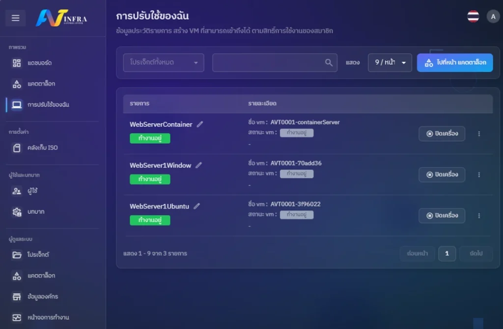 AVT Infra Control Center for Proxmox VE is one of Avesta’s products designed to manage infrastructures running on Proxmox VE. The system is built with Infrastructure-as-a-Code (IaaC) technology and serves as a self-service web portal to significantly reduce administrators’ workloads. It provides role-based access for different users, covering operations such as provisioning, backup, monitoring, and networking. The system can be installed in both traditional and container-based environments.